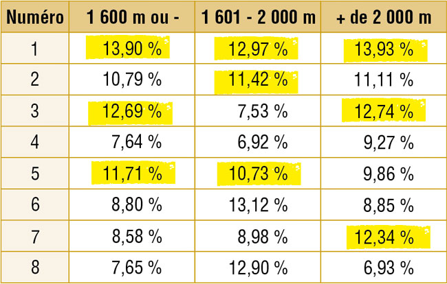 Voyez le pourcentage de courses gagnées en fonction du numéro et de la distance à parcourir :